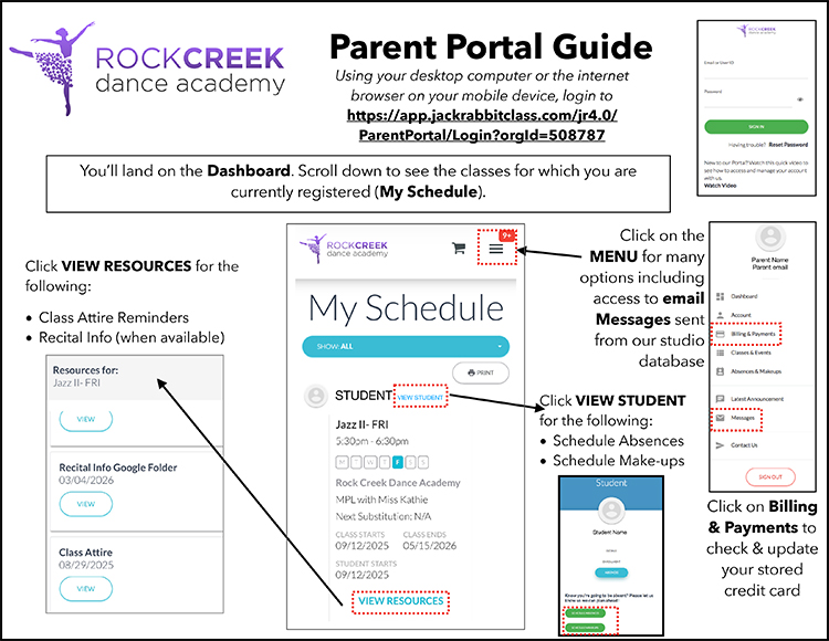 School-year tuition is divided into three trimesters: upon registration, by the first week of December, and by the first week of March. Should a student not wish to continue for the full school year, they may withdraw at the end of any trimester. The parent or guardian must notify Rock Creek Dance Academy of the withdrawal by email before the next trimester tuition is charged. RCDA will not issue refunds for any missed classes, but may provide pro-rated refunds for early withdrawal within a trimester.