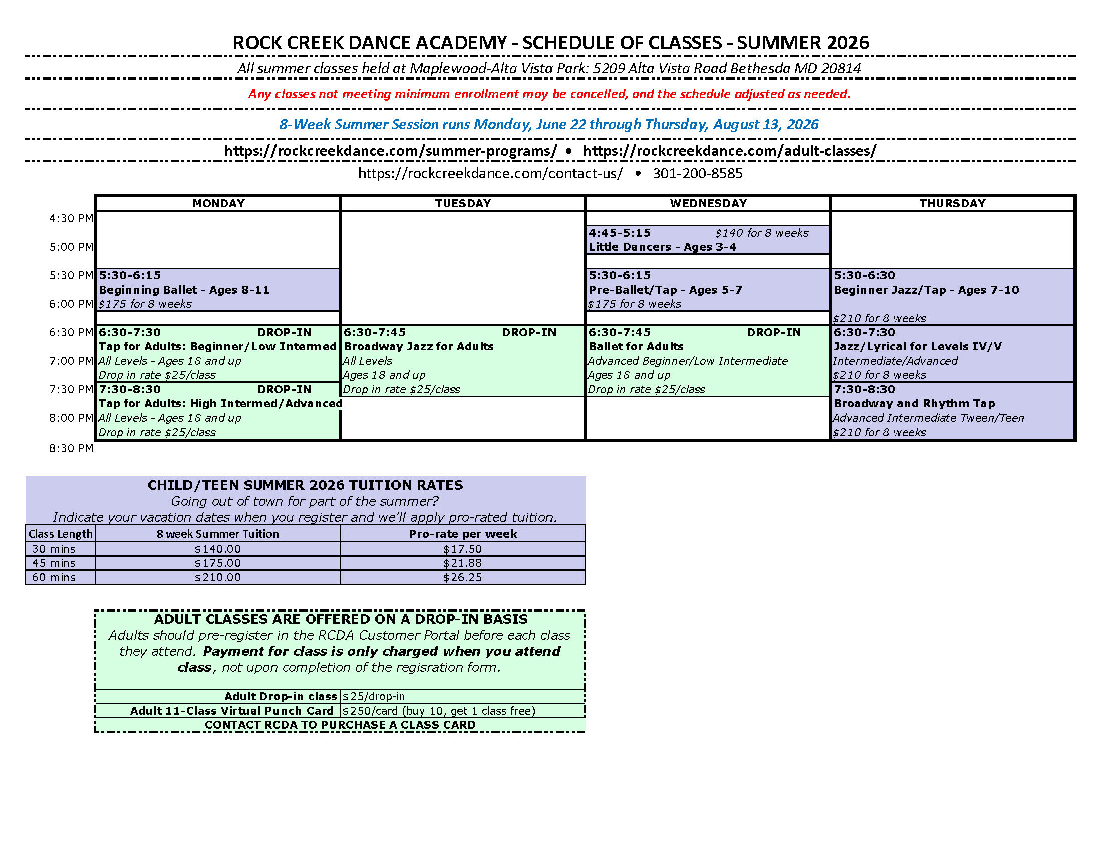 Download the 2026 Summer Dance Class Schedule